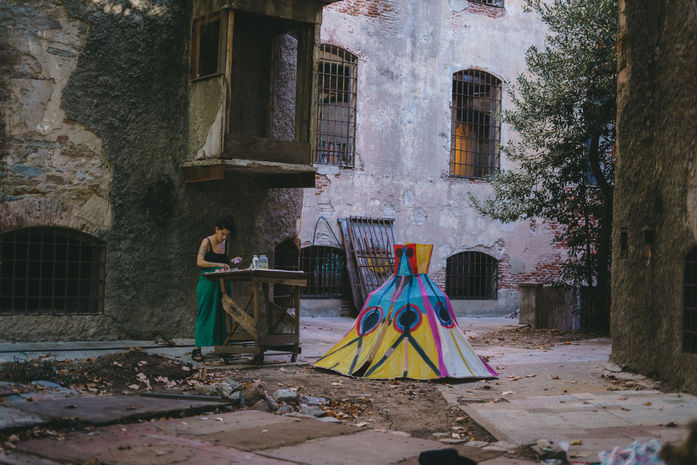 “Seis pieles de la insistencia” es la obra donde se crea e interviene el vestido-casa. Interacciones fue abrir esa obra. Insistir, volver sobre lo hecho. Nueve artistas y duplas invitadas a habitar ese hogar a su manera. Un encuentro de generosidades sobre una prenda hecha rastro de innumerables pieles.